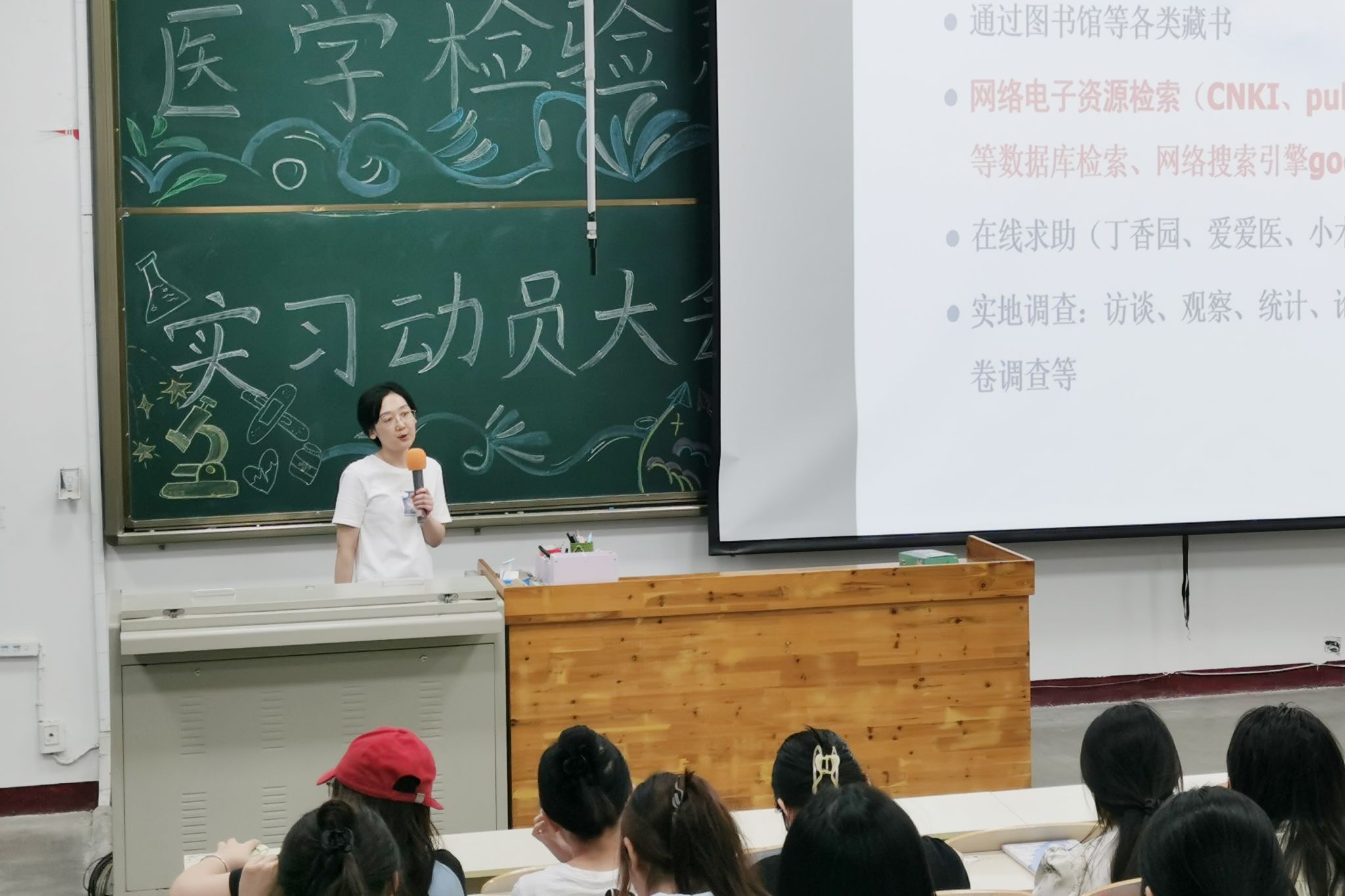 程凯副主任着重为同学们讲解了医学检验专业的实习内容。他建议同学们在实习前制定详细的实习计划,明确实习目标和任务。在实习过程中,要积极主动地向带教老师学习,多参与实际操作,不断提高实践操作能力,提醒同学们注重实习期间的总结和反思,在实践中发现问题并解决问题,不断提高自主学习能力和创新发展能力。