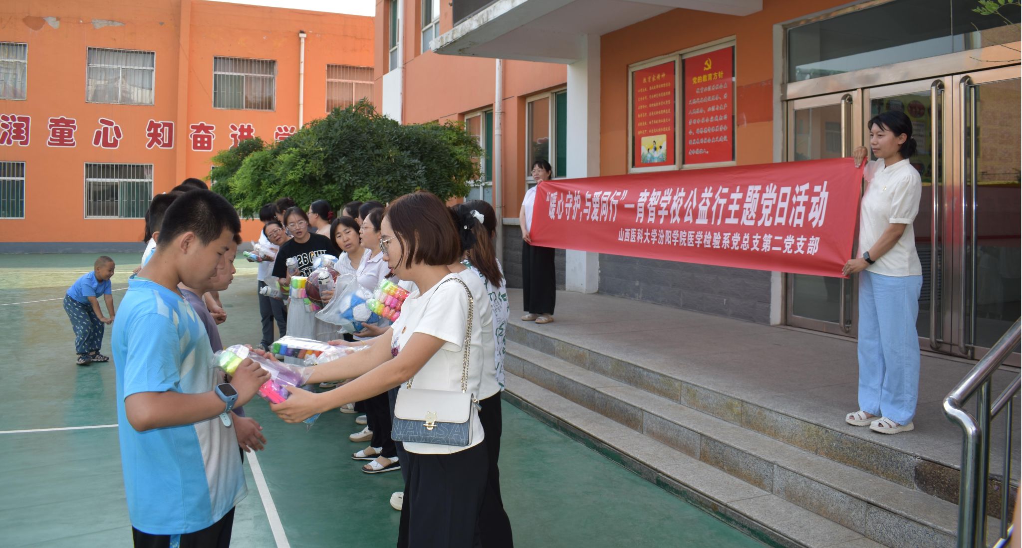 医学检验系党总支第二党支部全体党员前往汾阳市育智学校,开展了主题为“暖心守护,与爱同行”的党日活动,向育智学校师生捐赠了精心准备的文体用品、益智玩具、生活必需品等爱心物资,并开展爱心志愿服务活动。大家分组行动,一部分党员协助学校工作人员清洁与整理教室、活动室、康复训练区等场所,另一部分党员则与孩子们进行游戏互动,为孩子们送上快乐,“以人民为中心的发展思想”和“全心全意为人民服务”的根本宗旨在实际行动中得到升华。医学检验系党总支第二党支部还组织开展了“红心永向党,歌声颂华章”红歌献给党的主题党日活动。支部全体党员热情高涨、踊跃参与,精心撷取了《歌唱祖国》《北京的金山上》《没有共产党就没有新中国》《唱支山歌给党听》《我和我的祖国》等跨越革命、建设与改革光辉岁月的经典红歌,唱响爱党爱国爱社会主义的时代强音,激发奋进新征程、建功新时代的昂扬斗志。