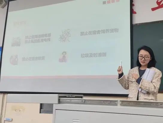 最后,陈老师再次强调了宿舍安全问题,指明宿舍可能存在的安全隐患点并且严明宿舍禁止事项。宿舍安全不是一人之事,一旦造成隐患,会波及多方,切不可心存侥幸心理。会后,同学们就生活与学习中容易出现的安全问题展开讨论与总结,同学们纷纷表示,将会把日常行为规范和安全观念内化于心,外化于行。