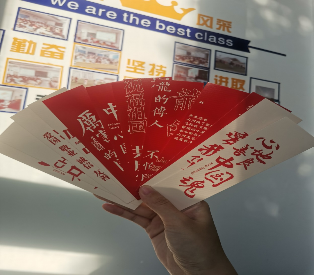此次活动主要分三个阶段进行,第一阶段是前期的准备阶段,活动负责人提前准备好爱国爱党红色经典书签和卡片,然后在这些书签和卡片上写下了关于党的二十大精神学习的一些小问答及励志话语,旨在通过这样的趣味活动的方式进一步加深同学们对党的二十大的了解,以励志话语鼓励同学们奋发向上。第二阶段是随机藏匿书签和卡片,活动负责人将书签和卡片分别藏匿于教室不同的角落,然后下发通知至班级,鼓励同学们积极寻找,旨在让同学们在娱乐中学习党的二十大知识,感悟会议精神。第三阶段是答案的收集与后期宣传阶段,抽到问题的同学以微信消息的形式交回答案,同时把抽到的问题的图片交回用以装饰教室文化栏。