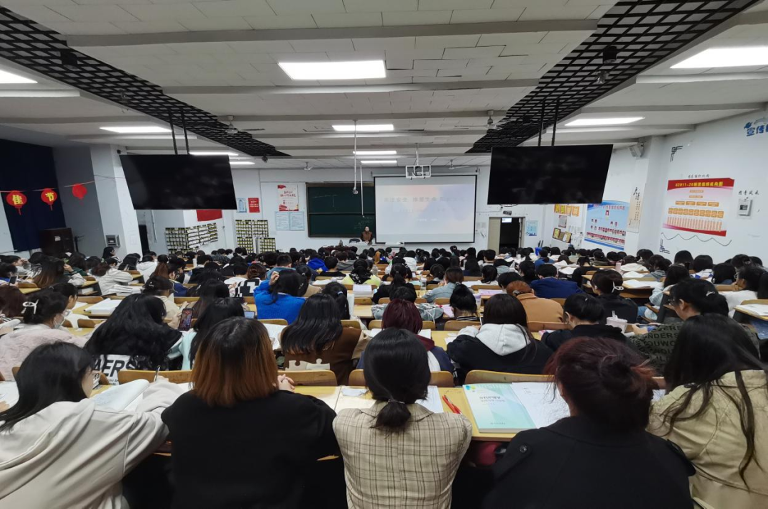 其次,赵老师以“生命的消亡”为引导,为同学们具体讲解了常见的几种校园生活安全隐患:食品安全、交通安全、防火安全、电信诈骗和病毒传播及疫情防控。从预防危险的发生到面临危险时的办法再到各种防控原则,赵老师全面地为大家讲解了各种校园安全隐患和防控措施,旨在提高同学们的安全防范意识,规范同学们的生活习惯,加强同学们的自我保护能力,培养同学们对社会、对他人、对自身负责的态度。最后赵老师以“纵有疾风起、生命不言弃,心有阳光、一路芬芳”为结束语,激励大家珍爱生命,以阳光的心态面对生活。