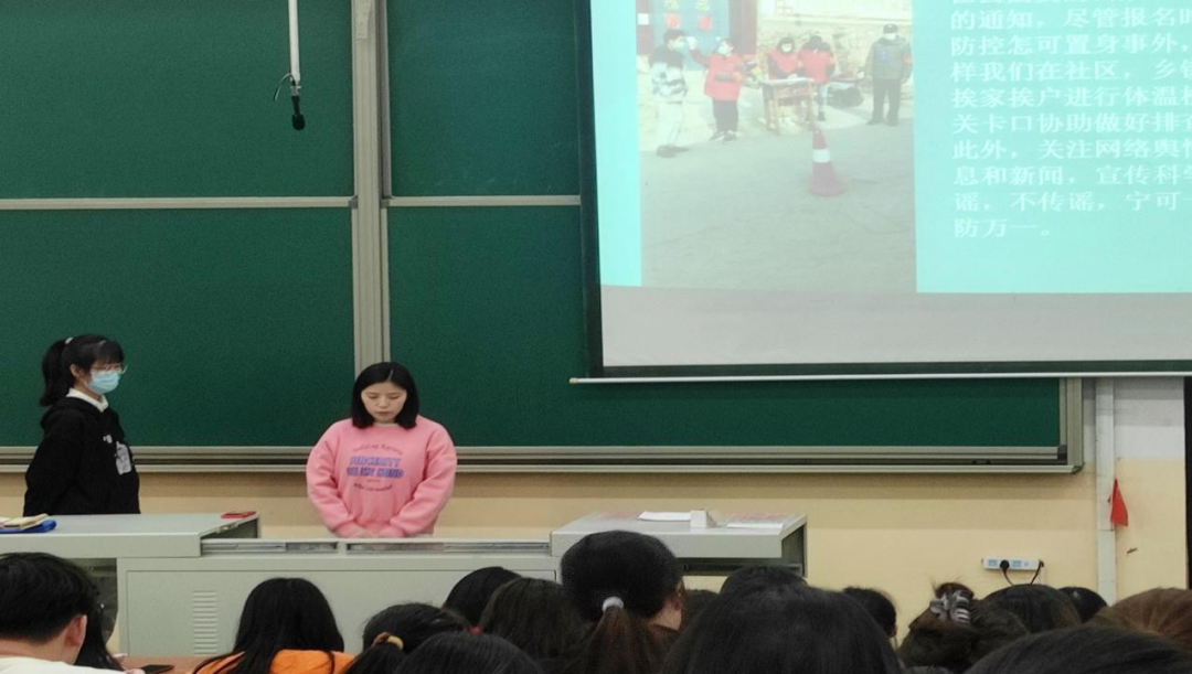 抗击疫情,共克时艰,青年志愿者在路上!护理学系62021-30班的同学们在寒假期间活跃在疫情防控工作前线,虽然不能像医护工作者一样奋战在抗疫一线,但他们也用自己的实际行动,在基层防疫一线践行着医学生的责任与担当。为鼓励更多同学向他们学习,积极参与疫情防控和志愿服务,护理学系62021-30班于3月24日下午开展了以“战‘疫’有我,‘青’尽全力”为主题的志愿者经历分享活动。