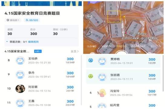 为进一步增强我班同学的国家安全意识和素养,4月15日上午九点,由组织委员杜佳楠在班级群内发布4·15国家安全日知识竞赛题目,我班学生积极参与。知识竞赛内容涵盖了总体国家安全观、国家安全法等涉及国家安全的知识题目。比赛过程中,选手们严格遵循比赛规则,踊跃答题,展现了良好的精神面貌和扎实的知识储备。