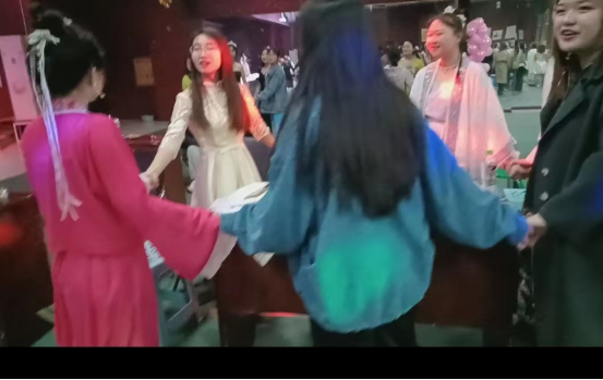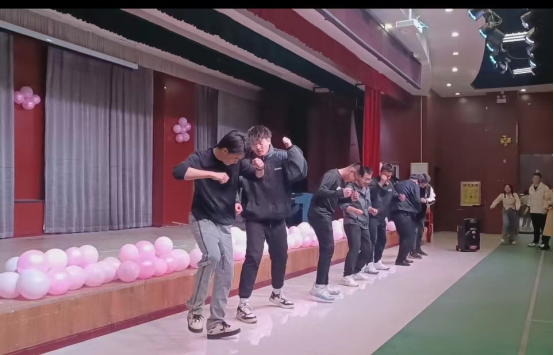 团建游戏环环套,分为“甩掉烦恼,独自潇洒—公鸡下蛋”、“萝卜蹲进阶版”、“曲水流觞,激情传鼓—击鼓传花”。游戏以宿舍为单位进行,主持人随机抽取宿舍成员进行比拼,期间落后的宿舍上台进行才艺表演。在激烈的游戏比赛过程中,我们看到了宿舍代表的努力,也看到了宿舍成员之间的互相加油助威,宿舍成员团结一心,积极向上。尤其是第二个游戏“萝卜蹲进阶版”。宿舍成员在空地上围成小圈,一起做同一个动作,发出同一种声音,展现的是默契与配合,此起彼伏的蹲起散落在会场的各个角落,到处都充满着欢声笑语。“曲水流觞,激情传鼓—击鼓传花”游戏环节中,以气球为媒介传导,360度无死角传递,一双双手举起挥动,气球在空中飞舞弹跳,有人躲开有人迎上。游戏的惩罚选取绕口令、英语四级经典语段、各类小说对话文段等,趣味十足,同学们精彩的个人语言展示赢得了阵阵掌声。