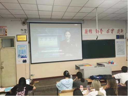 随后,主持人薛晨冉向大家讲解了电信诈骗作案的常见套路,分别是冒充公检法诈骗、冒充熟人诈骗、破财消灾诈骗。并在大屏幕上用PPT的形式让同学们看到并了解了更多关于校园和社会中常见的电信诈骗案例。例如最近诈骗案例不断增加的“培训贷“,很多受害人陷入退费困难和高利贷的风险,深深地引发了同学们的思考。