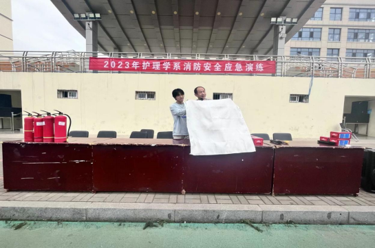 消防安全是我们生活中不可忽视的一个重要问题。每年,我国都会发生大量的火灾事故,给国家和人民带来了巨大的财产损失和生命威胁。为了全面遏制消防安全事故的发生,提高师生员工在紧急情况下的逃生自救能力,9月23日下午5点,护理学系特别邀请学院消防安全科科长梁庆刚老师给大家做消防安全教育并指导护理学系2023年消防安全应急疏散演练。护理学系党总支副书记、62301-10班辅导员申涛,护理学系团委书记、62220-28辅导员康智芳及一年级新生参与本次活动。