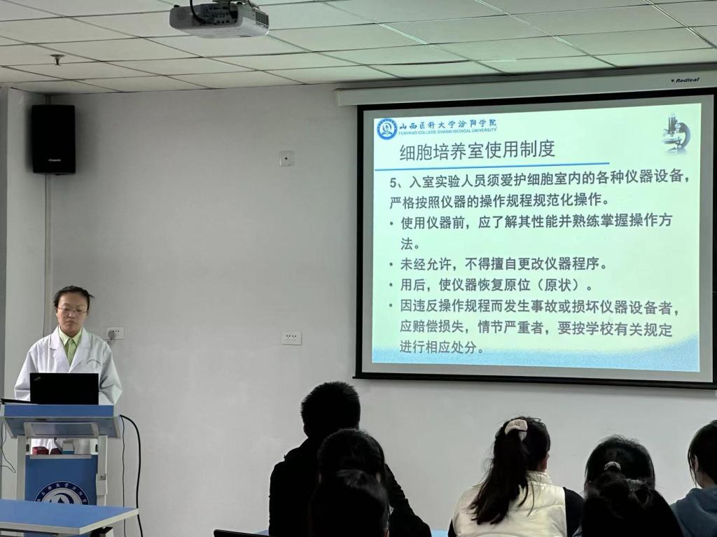 中心实验室宋彬妤、刘晓梁、付慧、王浩玉四位老师分别对实验室守则、安全制度、仪器使用规范、实验动物房管理、危化品管理,及实验室常见事故的预防和处理等方面作了详细讲解。科技中心主任吴惠文做了总结讲话,强调了实验室安全的重要性,要求同学们要严格落实实验室安全制度,将安全责任落实到岗到人,确保实验安全和师生安全。