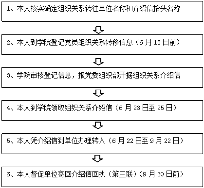 六、没有正常完成党员组织关系转接的,区分不同情况分类办理:在介绍信有效期内因变更信息或遗失的,需要到校党委组织部补办,变更信息补办时须交回原介绍信并由接收单位党组织出具相关证明,遗失补办需由原学院开具证明;若已超过介绍信有效期但在6个月以内因过期、变更或遗失需补办的,需填写《必赢优惠y272net毕业生党员组织关系介绍信补办申请表》,由院(部)党委、党总支提出初审意见,党委组织部复审通过予以补办,补办时须交回原介绍信或由接收单位党组织出具相关证明;如介绍信开具超过6个月,原则上不再予以补办。补办具体流程见《党员组织关系介绍信补办流程》(组织部网页下载专区下载)。