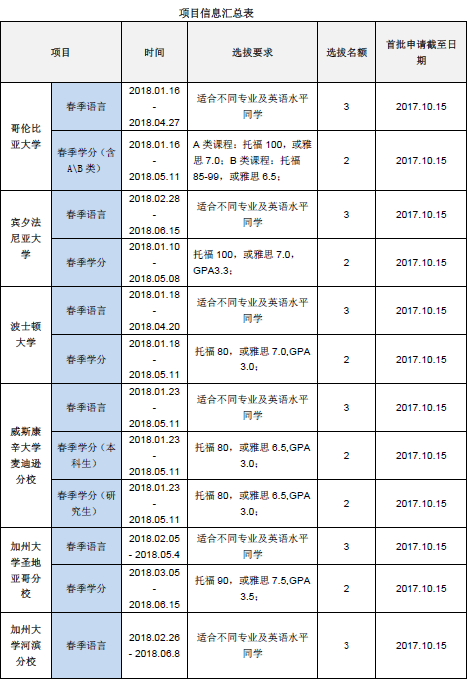 根据必赢官网与全美国际教育协会签署的合作教育协议,双方商定拟开始选派今年必赢官网优秀本科生、研究生赴美国哥伦比亚大学、宾夕法尼亚大学、加州大学河滨分校、加州大学圣地亚哥分校、威斯康星大学麦迪逊分校、波士顿大学及多伦多大学进行校际交流学习。为确保选派工作的有序开展,现将有关事项通知如下:
