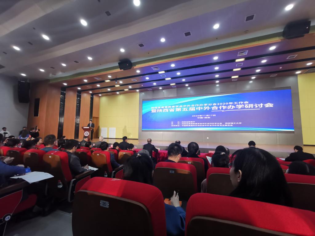 11月17日,陕西省高等教育学会中外合作办学分会2020年工作会暨陕西省第五届中外合作办学研讨会在西安理工大学召开,陕西省委教育工委副书记、省教育厅副厅长刘建林,中国教育国际交流协会副秘书长余有根出席并讲话。副校长殷永建代表学校出席,国际合作与交流处处长陈莉霞和相关工作人员参加会议。
