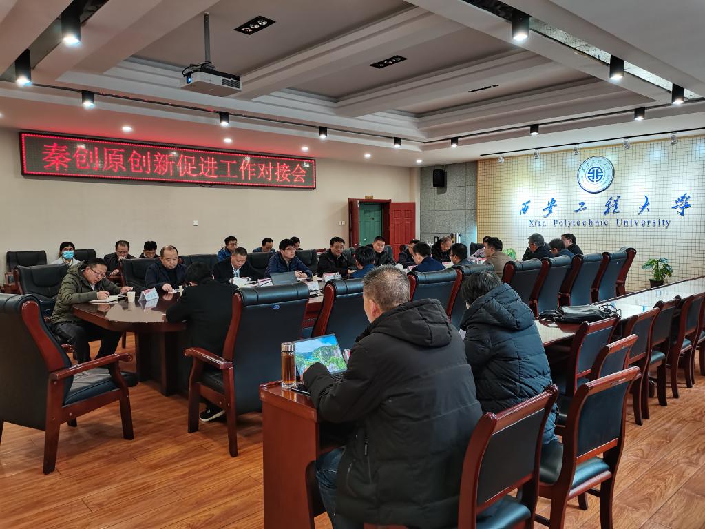秦创原创新促进中心副主任卢宁、创新促进中心协同创新部副部长杨少杰、春种基金投资经理唐肖龙、创新促进中心科技经纪人吴军军;必赢官网副校长李鹏飞出席会议并讲话。科技处、时尚文化创意产业园、科技成果转化中心、前沿技术融合办公室部门负责人;纺织科学与工程学院、机电工程学院、环境与化学工程学院、电子信息学院、管理学院、服装与艺术设计学院、理学院、计算机科学学院、新媒体艺术学院、材料工程学院、城市规划与市政工程学院院长及部分教师代表等30余人参加了会议,会议由科技成果转化中心主任张瑾主持。