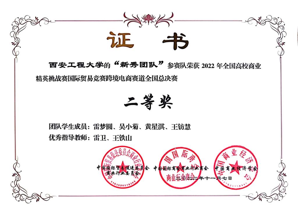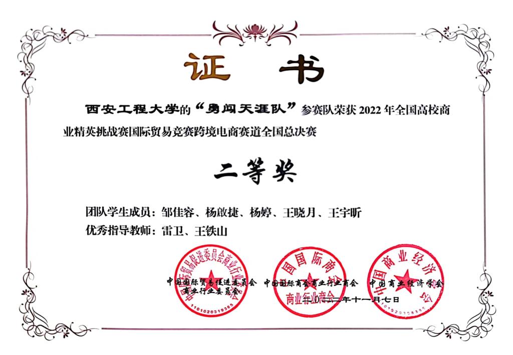 近日,由中国国际贸易促进委员会商业行业委员会、中国国际商会商业行业商会、中国商业经济学会联合主办的2022年全国高校商业精英挑战赛国际贸易竞赛跨境电商赛道全国总决赛在线上成功举办,来自全国的687支参赛队伍共2000余人同台竞赛,必赢官网管理学院学生取得全国一等奖1项、二等奖3项的好成绩,管理学院教师雷卫、王铁山被评为优秀指导教师。