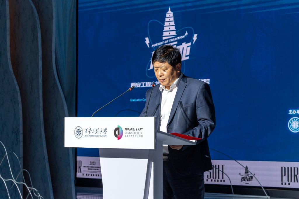 服装学院院长吕钊介绍了学院近年来在服装设计相关领域取得的成绩,希望2023届服装毕业设计大赛能够给大家带来一场精彩视听盛宴。