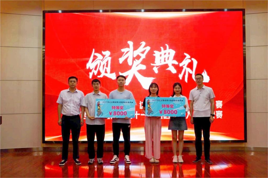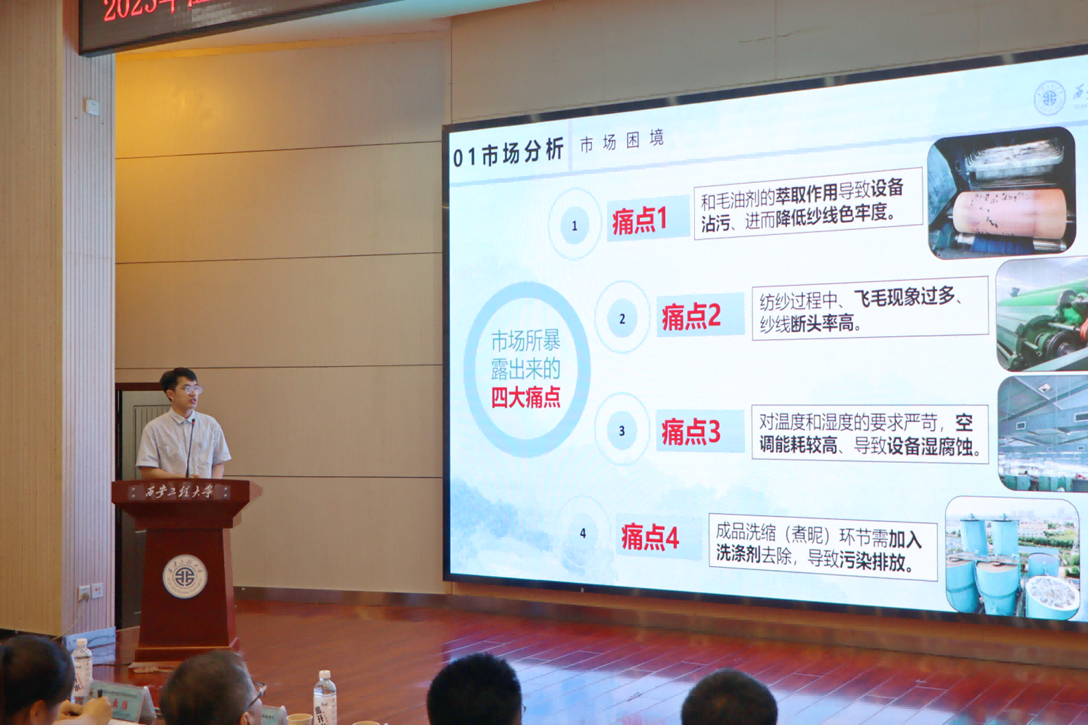 本届大赛的主题为“智能供应链、产品创新、低碳环保和品牌营销”,从3月开始筹备,经多部门和各学院组织动员和协同合作,最终共有533名学生参与申报210个项目。经海选、初赛共择优选出31组作品进入校决赛,最终评选出最具创业潜力奖1项,设创业基金10000元;特等奖2项,分别设8000元奖金;一等奖3项,分别设5000元奖金;二等奖5项,分别设3000元奖金;三等奖21项,分别设2000元奖金。在本次比赛中,“毛绒纤维梳纺优控剂的开发与应用”项目组获得了最具创业潜力奖和特等奖;“具有超高耐热阻燃性能的Janus石墨烯/PBO织物在智能消防服饰中的应用”项目组获得校决赛特等奖,他们将代表学校参加溢达创意大赛的全国总决赛。在颁奖典礼上,各位专家评委、嘉宾一起为各等次获奖团队颁奖。