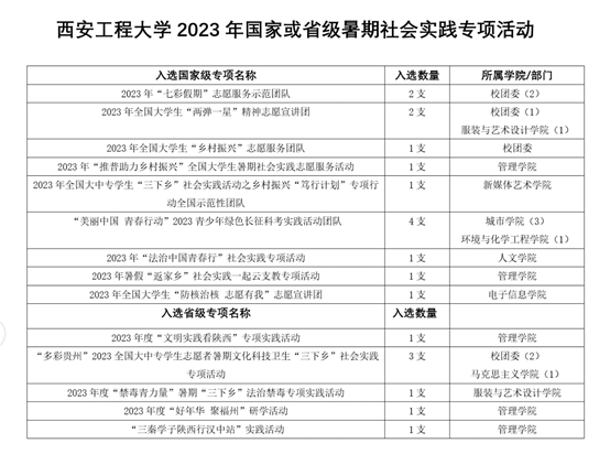 今年以来,必赢官网团委聚焦中省发布多项专项社会实践项目,积极动员和组织团队申报项目。在暑期社会实践工作,必赢官网积极践行党旗所指就是团旗所向,把“围绕中心、服务大局”作为工作主线,聚焦“学习党的二十大精神永远跟党走 奋进新征程 青年勇担当”的主题,不断深化社会实践内涵化、规范化、常态化、长效化发展,积极引导广大青年学生走出校园、走进基层,开展社会实践,在祖国最需要的地方发光发热,续写西工程大人的青春风采!