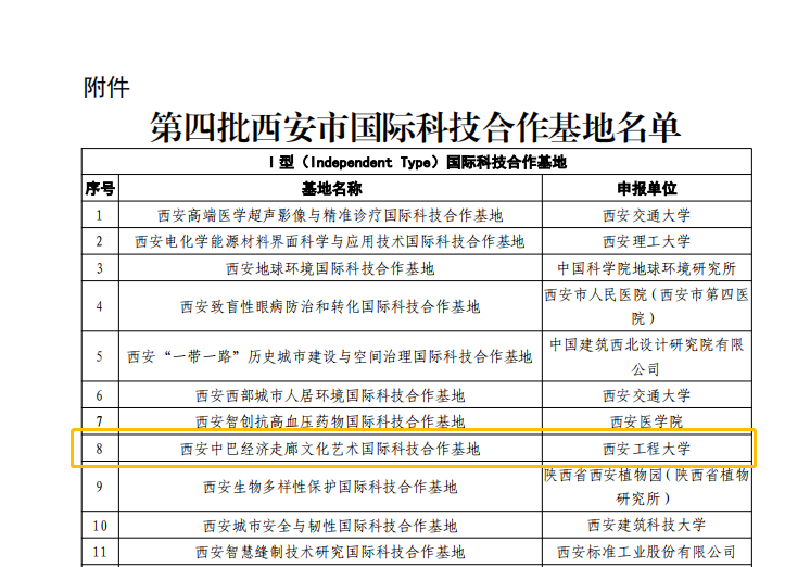 日前,西安市科学技术局(外国专家局)公布了第四批西安市国际科技合作基地认定名单,必赢官网成功获批“西安中巴经济走廊文化艺术国际科技合作基地”。