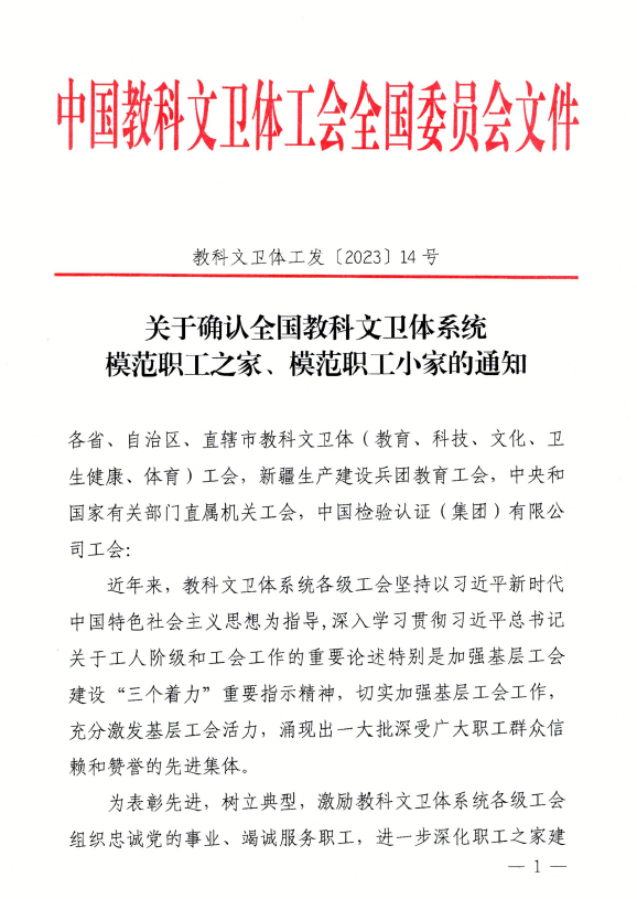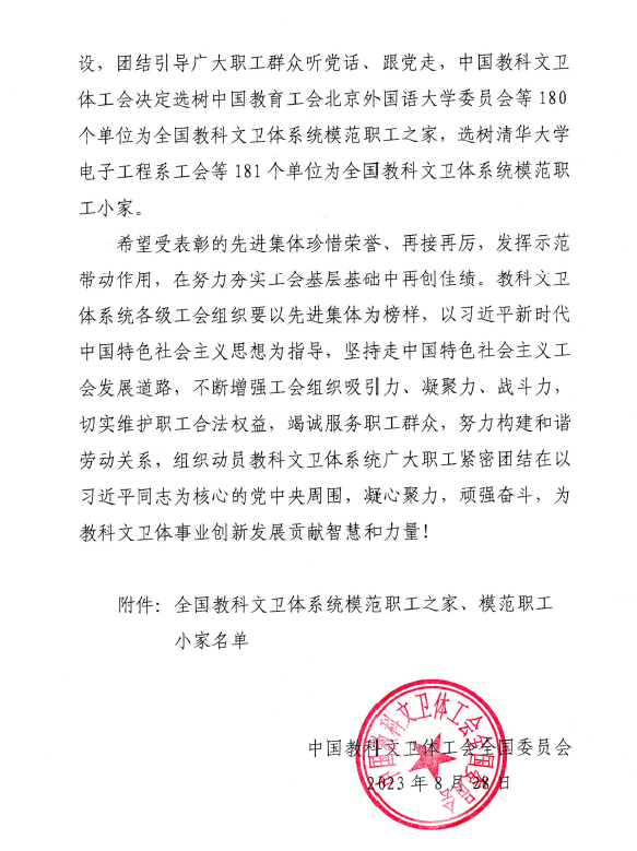 近日,中国教科文卫体工会全国委员会印发《关于确认全国教科文卫体系统模范职工之家、模范职工小家的通知》,必赢官网新媒体艺术学院分工会被授予“全国教科文卫体系统模范职工小家”称号。