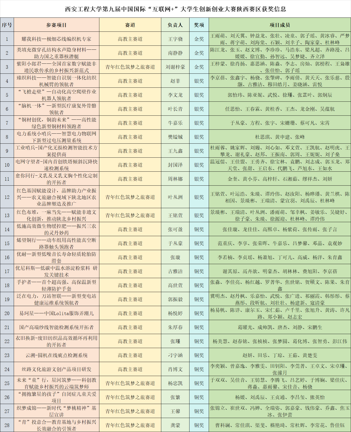 本届省赛吸引了全省101所学校,34万人次,7.2万个项目报名参赛。学校高度重视,由教务处统筹推进,多部门各学院协同联动,经过4轮校赛评审打磨,最终推出31项项目参加陕西赛区复赛,其中高教主赛道24项、“青年红色筑梦之旅”赛道7项。经省赛组委会网络评审、会议评审、现场答辩、评委会终评等多个环节评审,最终28项项目获奖。其中,高教主赛道《耀我科技—极细芯线编织机专家》、《类填充微穿孔结构水声隐身材料——助力国之重器核潜艇》将代表学校参加全国总决赛。