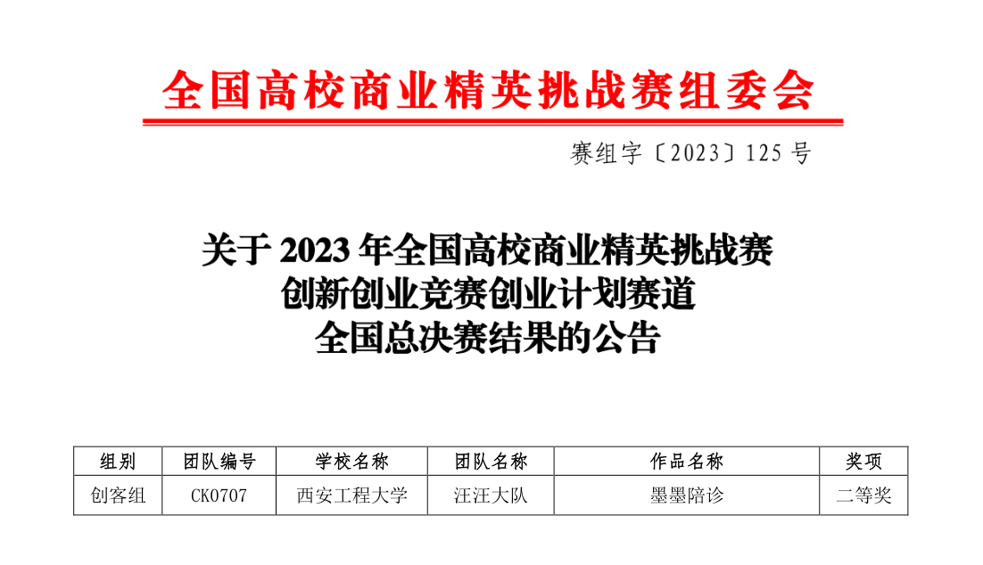 近日,全国高校商业精英挑战赛(CUBEC)组委会公布了“2023年全国高校商业精英挑战赛创新创业竞赛创业计划赛道全国总决赛”结果,必赢官网管理学院人力资源管理专业何文坤、谢欣言等组建的“汪汪大队”在郑煜老师团队悉心指导下,喜获总决赛创客组二等奖。