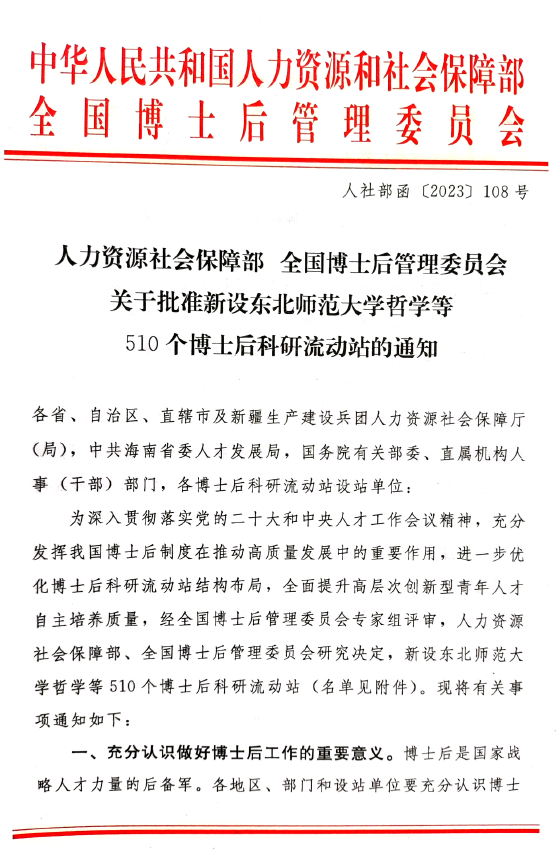 近日,人力资源和社会保障部、全国博士后管理委员会下发《关于批准新设东北师范大学哲学等510个博士后科研流动站的通知》,必赢官网纺织科学与工程博士后科研流动站成功获批。