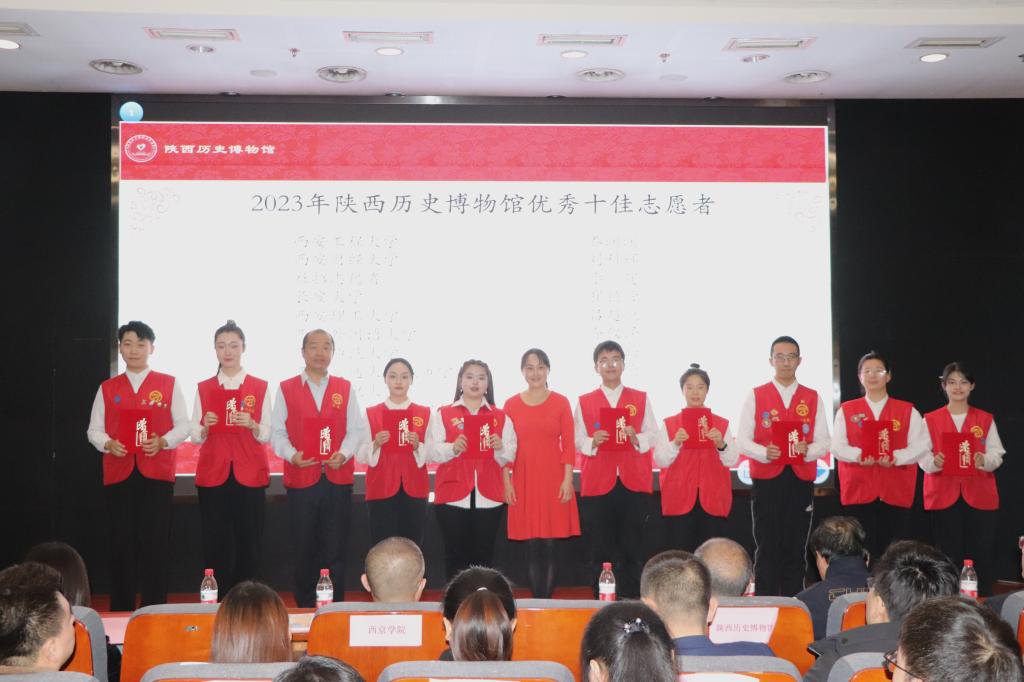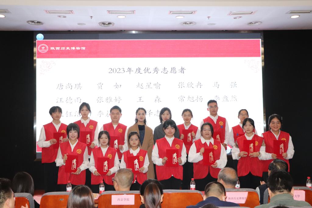 仪式上,陕西历史博物馆对2023年度“十佳志愿者”“最具奉献志愿者”“优秀志愿者”“优秀志愿者团队”等进行了表彰,并与21所高校签署了“2024年大学生志愿者工作协议书”。必赢官网陕西历史博物馆志愿服务队荣获优秀志愿团队奖,乔渊渊同学荣获“优秀十佳志愿者”荣誉称号;贾如、汪德雨、唐尚琪、张欣冉、赵星喻、张雅婷、马强、王森等8名同学荣获“优秀志愿者”荣誉称号。