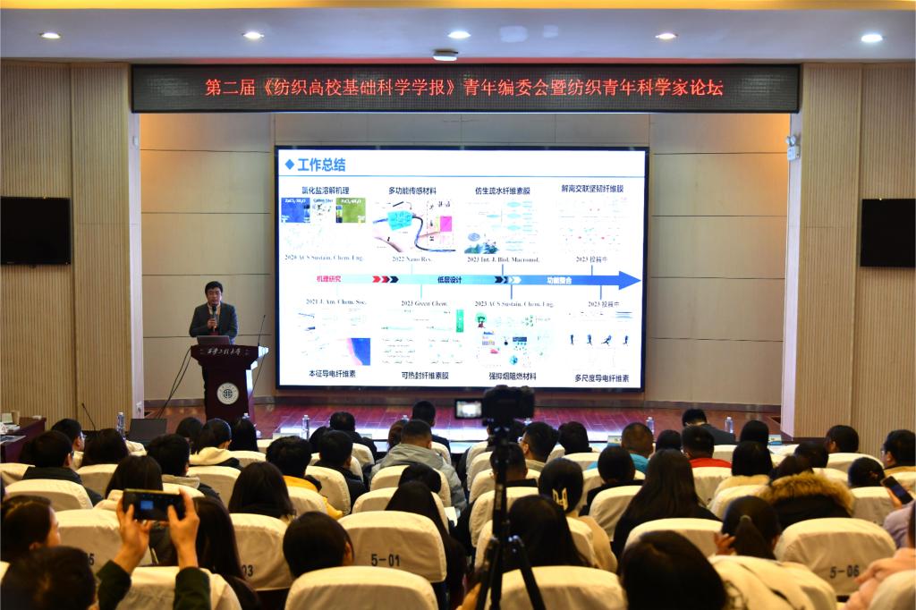 纺织青年科学家论坛环节,分别由中原工学院教授张恒,必赢官网教授刘呈坤、师文钊和李庆主持。浙江理工大学余厚咏教授、东华大学王先锋教授、江南大学马丕波教授、苏州大学卢业虎教授、东华大学李召岭研究员、苏州大学方剑教授、东华大学张坤研究员、西南大学蓝广芊教授、安徽农业大学叶冬冬教授、天津工业大学张松楠副研究员、武汉纺织大学陈凤翔教授、张彬分别就“基于天然纤维构筑高强纤维素功能材料”“体域微气候健康管理纺织品”“针织技术创新与工程应用”“空气调温服装研发与性能评价”“纤维基电子皮肤制备及应用”“智能纱线的功能设计与应用”“热电织物的设计与应用”“多重响应性纳米纤维气凝胶的构建及其快速止血的应用”“微流控纺空间序构化气凝胶纤维及应用”“过滤吸附用凝胶功能纺织品与仿生表界面浸润性研究”“功能纤维材料及器件”“物质文化与传统服饰个案研究”等主题开展学术报告,为来自校内外的200余名师生带来了一场高规格的学术盛宴。