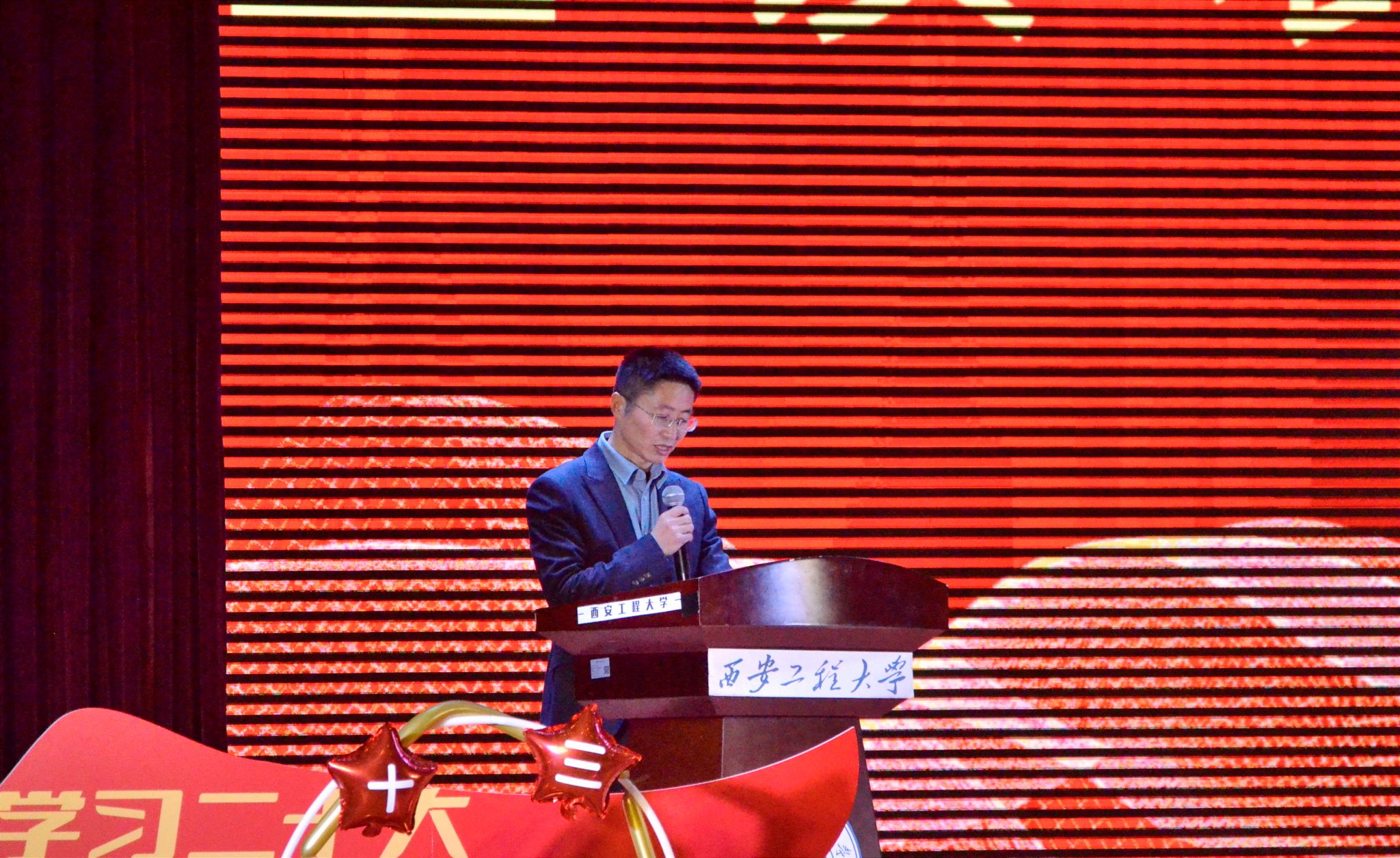 殷永建为活动致辞。他向人文学院受表彰的先进班集体和优秀个人表示祝贺,向辛勤工作的各位老师和学生干部表示诚挚的感谢。他高度肯定了人文学院在学风建设方面做出的努力和取得的成绩,希望学院继续积极探索,创新模式,完善机制,不断增强师生凝聚力,提高文化修养,为人文学子乃至全校广大师生提供一个锻炼和展示自我才华的舞台。
