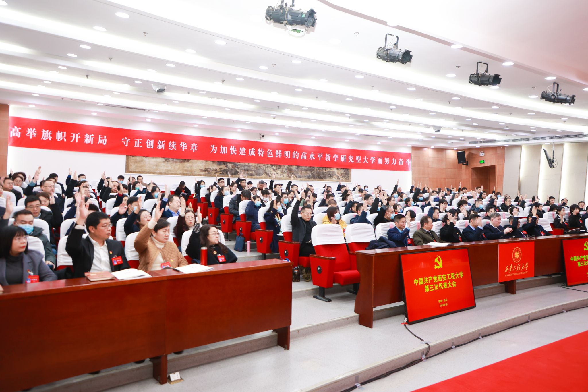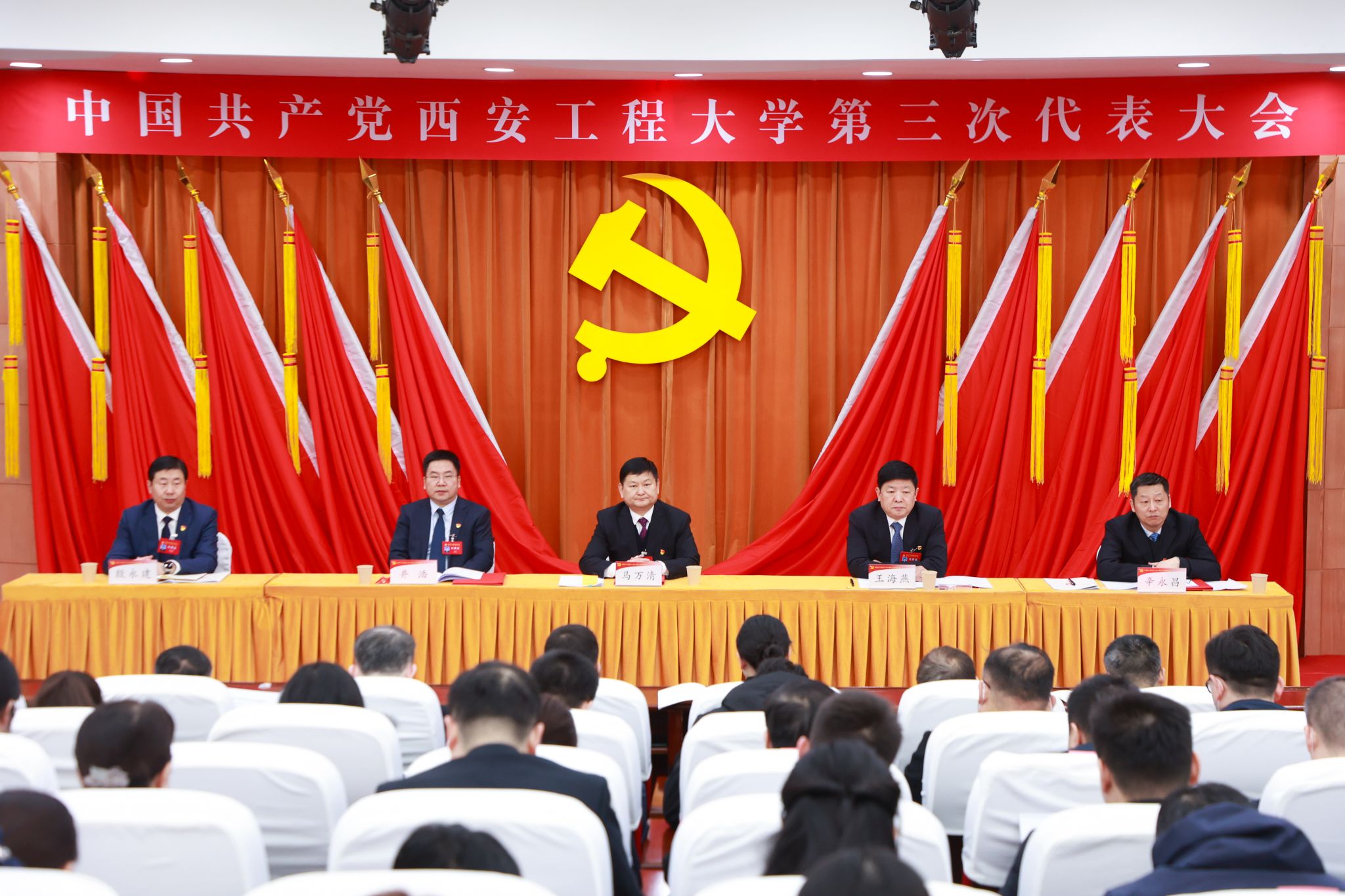 1月4日上午,中国共产党必赢优惠y272net第三次代表大会预备会议在临潼校区图书馆一楼报告厅召开。会议由校党委书记马万清主持,校党委副书记、校长王海燕,校党委副书记井浩,校党委副书记、纪委书记、监察专员辛永昌,校党委副书记殷永建在主席台就坐,全体正式代表参加会议。