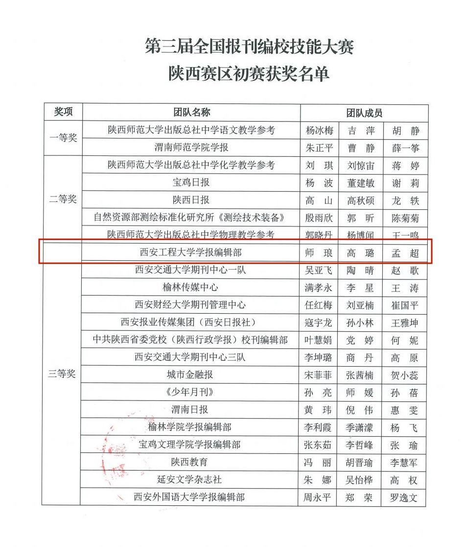 近日,陕西省新闻出版局表彰了第三届全国报刊编校技能大赛陕西赛区的优秀团队。学报编辑部师琅、高璐、孟超组队参赛并荣获优秀团队三等奖。