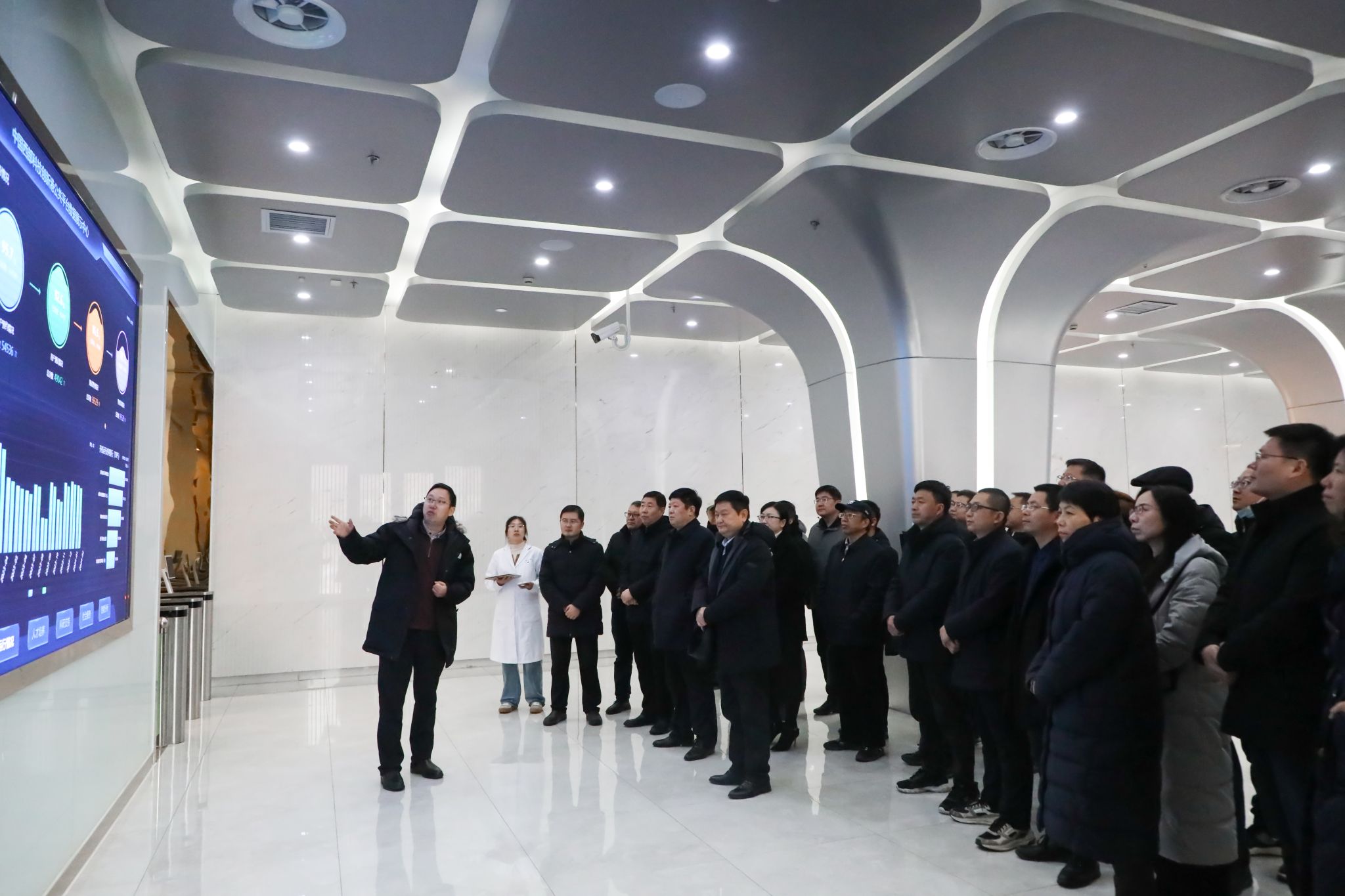 全体处级干部观看了“全面从严治党”主题警示教育片,进一步强化了党员干部的党性修养和纪律规矩意识。在实践研学环节,大家赴西安交通大学创新港校区进行实地考察,先后参观了中国西部科技创新港数字展厅、成果展厅、分析测试中心和现代设计及转子轴承系统教育部重点实验室。