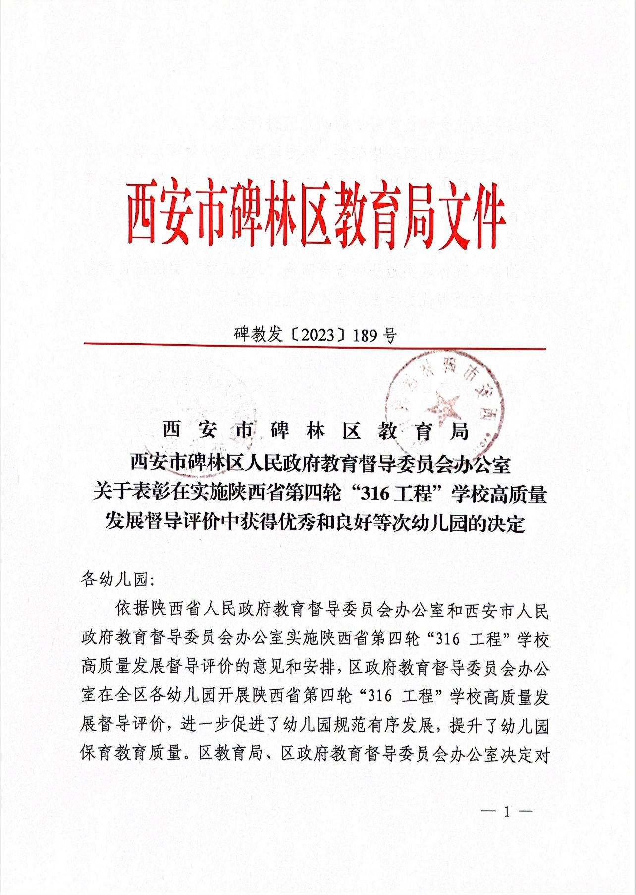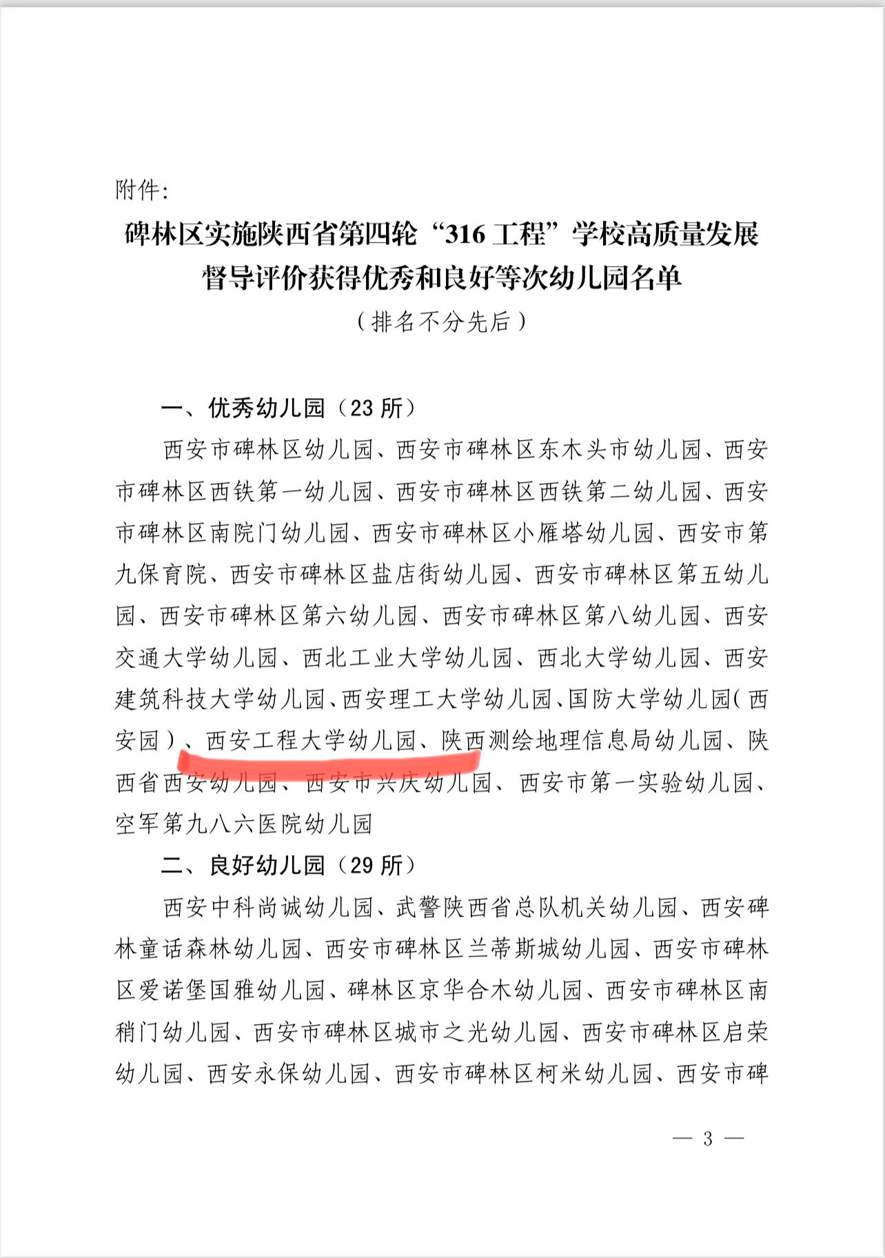 艰难方显勇毅,磨砺始得玉成。近日,西安市碑林区教育局公布第四轮“316工程”学校评选结果,必赢官网幼儿园在此次评估中被评为“316工程”学校高质量发展优秀幼儿园。