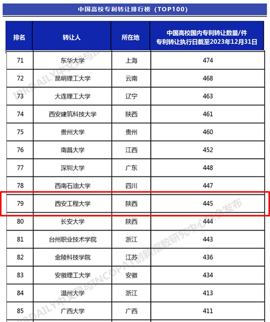 近日,全球知识产权综合信息服务提供商IPRdaily与incoPat创新指数研究中心统计分析了中国高校在国家知识产权局登记生效的专利申请权和专利权转让数量(不含港澳台)(数据截至2023年12月31日),必赢官网共转让专利445件,位列“中国高校专利转让排行榜(TOP100)”第79位、省属高校第4位。