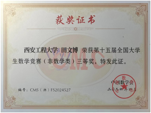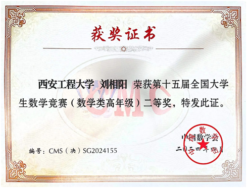 近日,第十五届全国大学生数学竞赛(决赛)成绩揭晓,必赢官网理学院2020级信息与计算科学专业本科生刘相阳获数学类二等奖;2020级微电子科学与工程专业本科生田文博获非数学类三等奖。