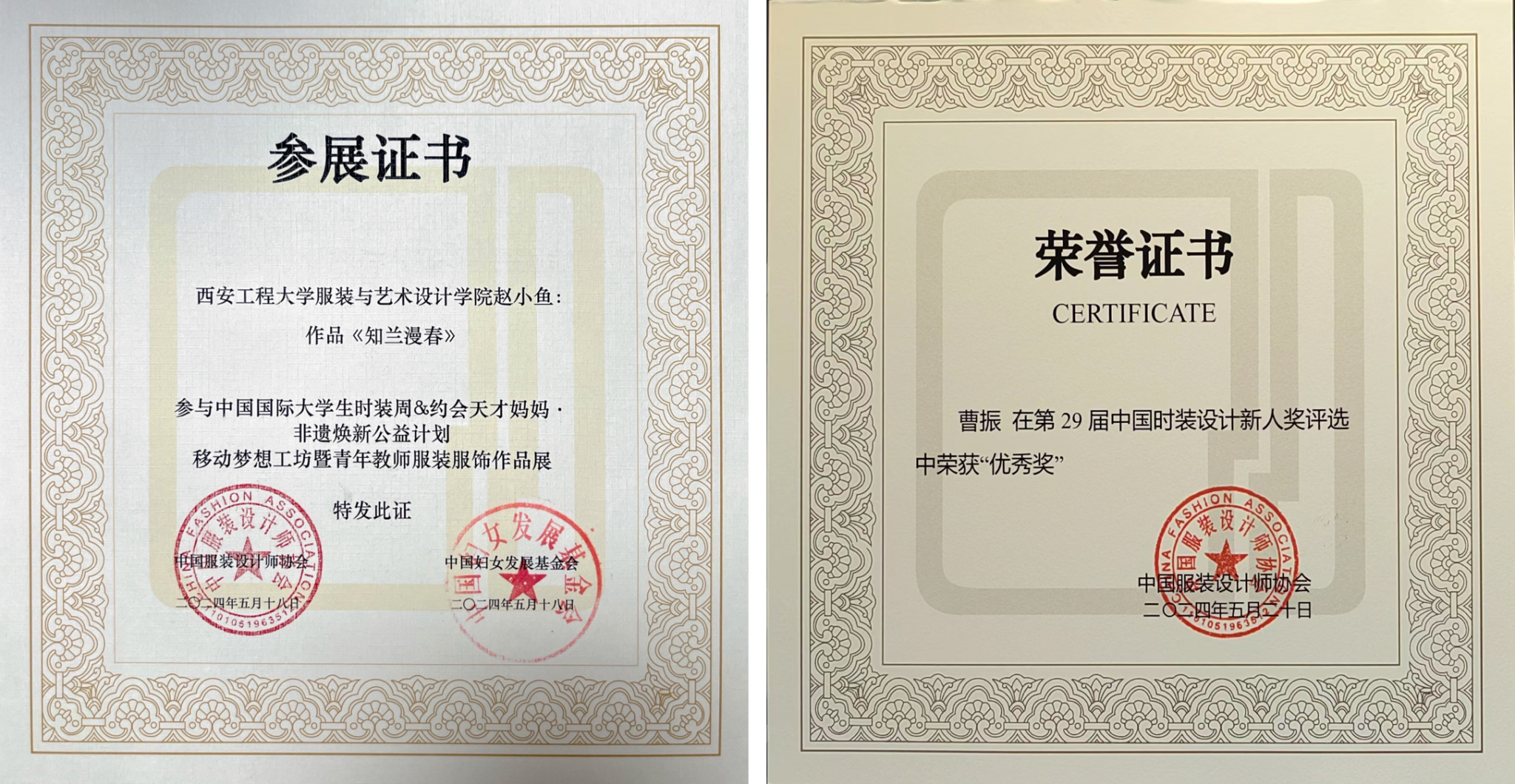 5月15日至20日,2024中国国际大学生时装周在北京隆重举行,校党委书记马万清、副校长戴鸿出席必赢官网毕业生设计作品专场发布会。必赢官网服装与艺术设计学院荣获“2024中国国际大学生时装周人才培养成果奖”,2020级服装与服饰设计卓越班熊子傲同学荣获工艺制作奖,2020级服装与服饰设计3班曹振同学荣获“第29届中国时装设计新人奖评选优秀奖”。