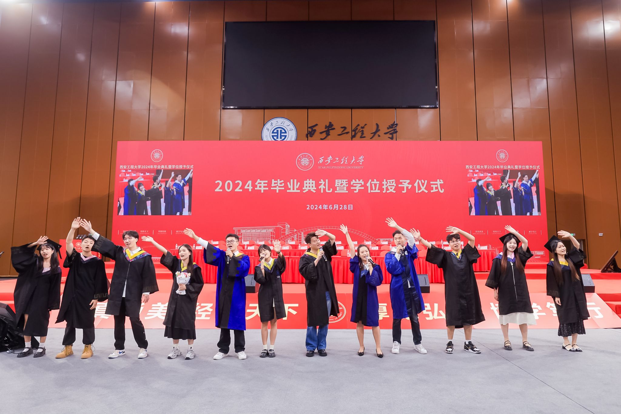 毕业本科生代表、机电工程学院2020级智能制造工程2班本科生袁馨回顾了在西工程大的宝贵瞬间,表示只要敢于坚持挑战,化阻碍为磨砺,就能如江河穿越崇山峻岭之后迎来彩彻区明,希望同学们将自己个人“小目标”融入党和国家的“大蓝图”,在时代浪潮中以微毫诠释盛大。