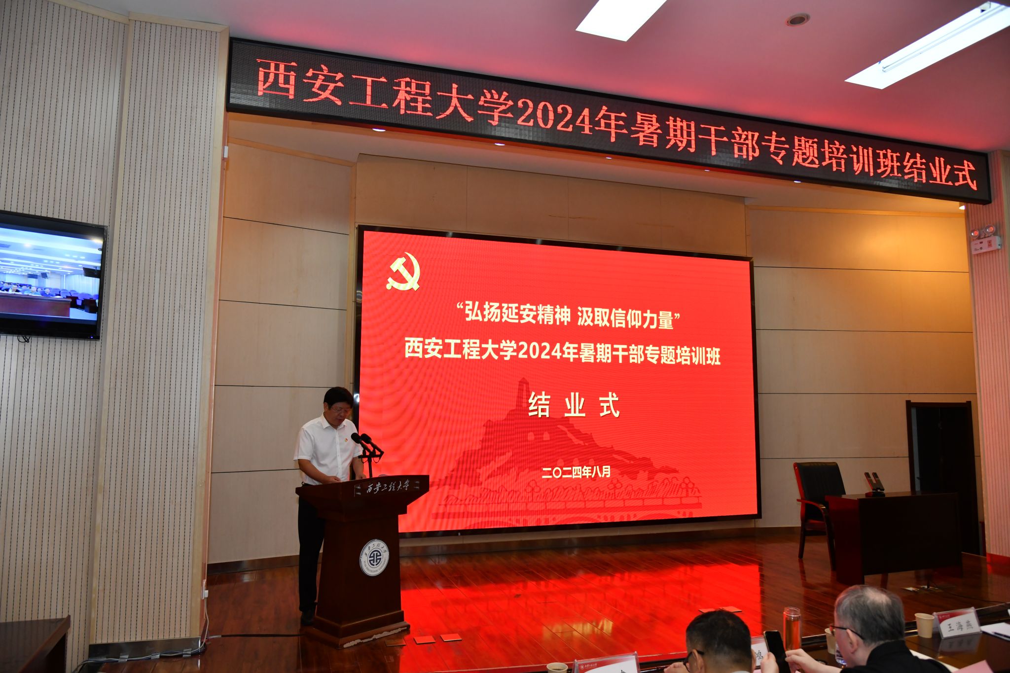 8月5日上午,培训班结业式在金花校区西纺报告厅、如意报告厅同步举行,结业式由校党委副书记、校长王海燕主持。交流发言环节,王晓先、景军锋、苏博、师文钊、郭松、臧国强、宁涛等7位处级干部分别结合培训谈感悟、围绕岗位职责明确今后努力方向,大家纷纷表示,此次培训内容丰富、安排紧凑、形式多样,通过身临其境体悟真理的味道、信仰的力量、使命的召唤,进一步强化了政治淬炼、思想锻炼、专业训练、作风历练,在今后的工作中,将大力传承弘扬延安精神,做到学以致用、以知促行,为学校事业改革发展作出更大贡献。