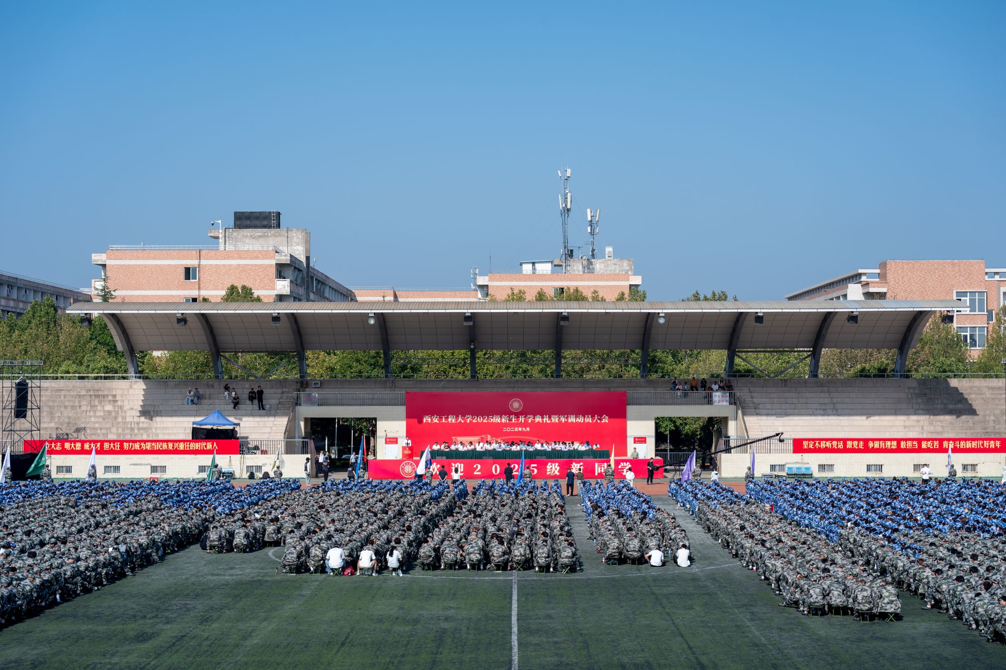 校领导、承训单位领导及校友代表为新生代表佩戴校徽,从此刻开始,大学精神在每一枚校徽上熠熠生辉,西工程大印记烙印在每一位同学心中,血脉交融、生生不息。开学典礼暨军训动员大会在全场齐唱校歌“光荣属于工程大”中圆满结束。