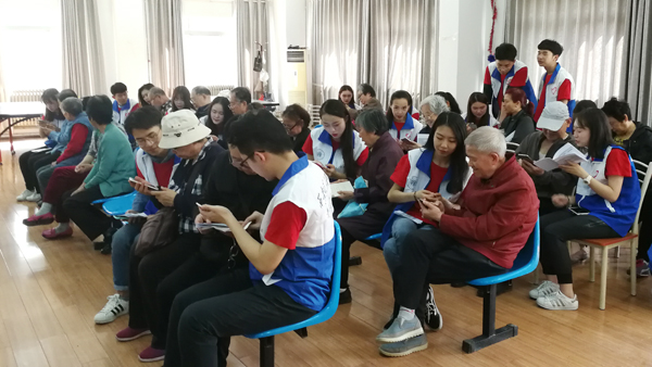 “我与老教师的智能时间”活动正式开始,学生们用精心制作的PPT、认真细致的讲解以及自己设计印制的微信使用手册讲解了如何添加好友;如何视频语音聊天;如何创建微信群聊;怎样设置朋友圈权限;如何收付款;如何快速打车;如何给手机充值、生活缴费;如何点外卖;如何在微信上看自己一天运动步数;过年过节如何群发消息等内容。