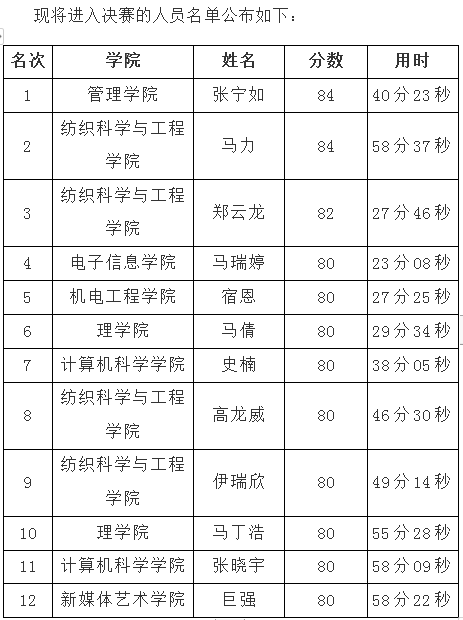 10月18日中午,信息搜索大赛初赛顺利举行。初赛通过线上平台进行答题,本次初赛参与答题者735人,完成答题者369人,最高成绩84分、用时40分23秒,得分最高的前12名选手成功晋级进入决赛。