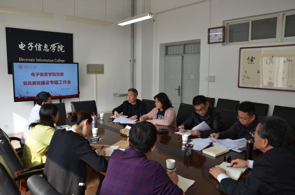 根据《中共必赢优惠y272net委员会“不忘初心、牢记使命”主题教育专项整治实施方案》的总体要求,电子信息学院党委于2019年11月4日召开党风廉政建设专题工作会,会议由院党委书记杨恩科同志主持,院党政领导班子全体成员参加。