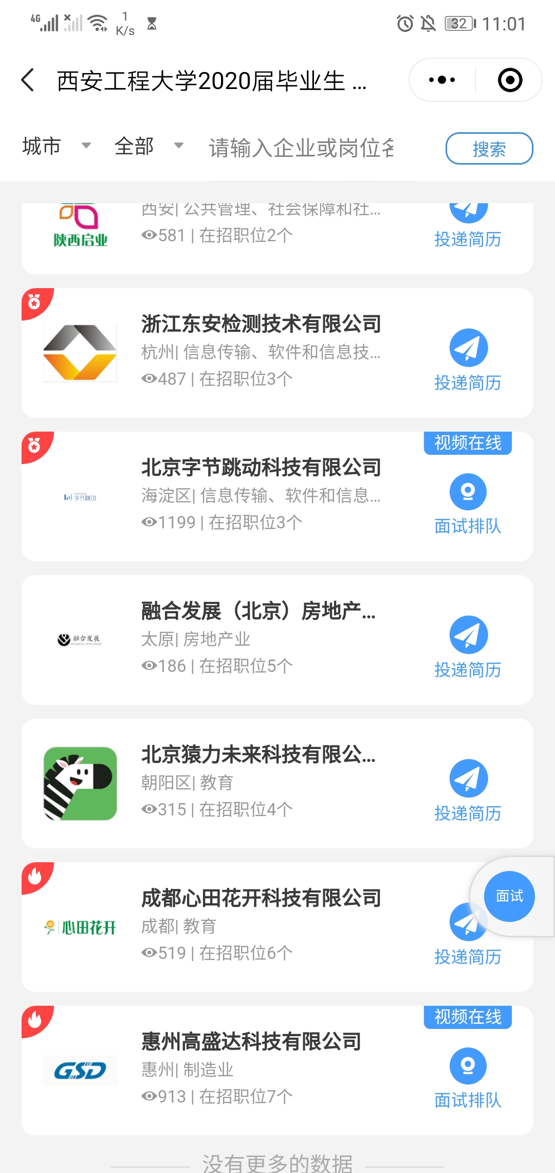 经过前期认真细致的筹备,此次双选会共吸引来自计算机行业、教育行业、服务行业等领域的27家用人单位参加,实际提供各类岗位76个,共吸引1129名求职者参与,双选会在线浏览量达5600余次,达到了预期效果。
