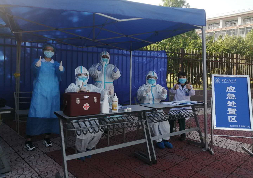 校医院预检处是医院的第一道防线,必须严防死守,预检处的医务人员必须做好防护,面对高温,大家依然穿着防护服、隔离衣,戴好口罩手套,坚守在第一线。学生有任何不适来到医院,首先就是预检处的医护人员接待,对于体温偏高的学生,护士再次测温,医生仔细询问病史及接触史,根据学生症状,对于不能确诊的发热学生,立即就地隔离,依照流程,通知导员陪同学生转院检查,及时安排救护车将学生及时转送至上级医院。对于能确诊的发热学生安排在校医院留观住院治疗,痊愈后才能返回宿舍。对于体温正常的学生可以到诊室正常就诊取药。在这期间,不论是党员还是普通职工,都能时时处处为学生着想,积极主动做好本职工作,为校园安全保驾护航。