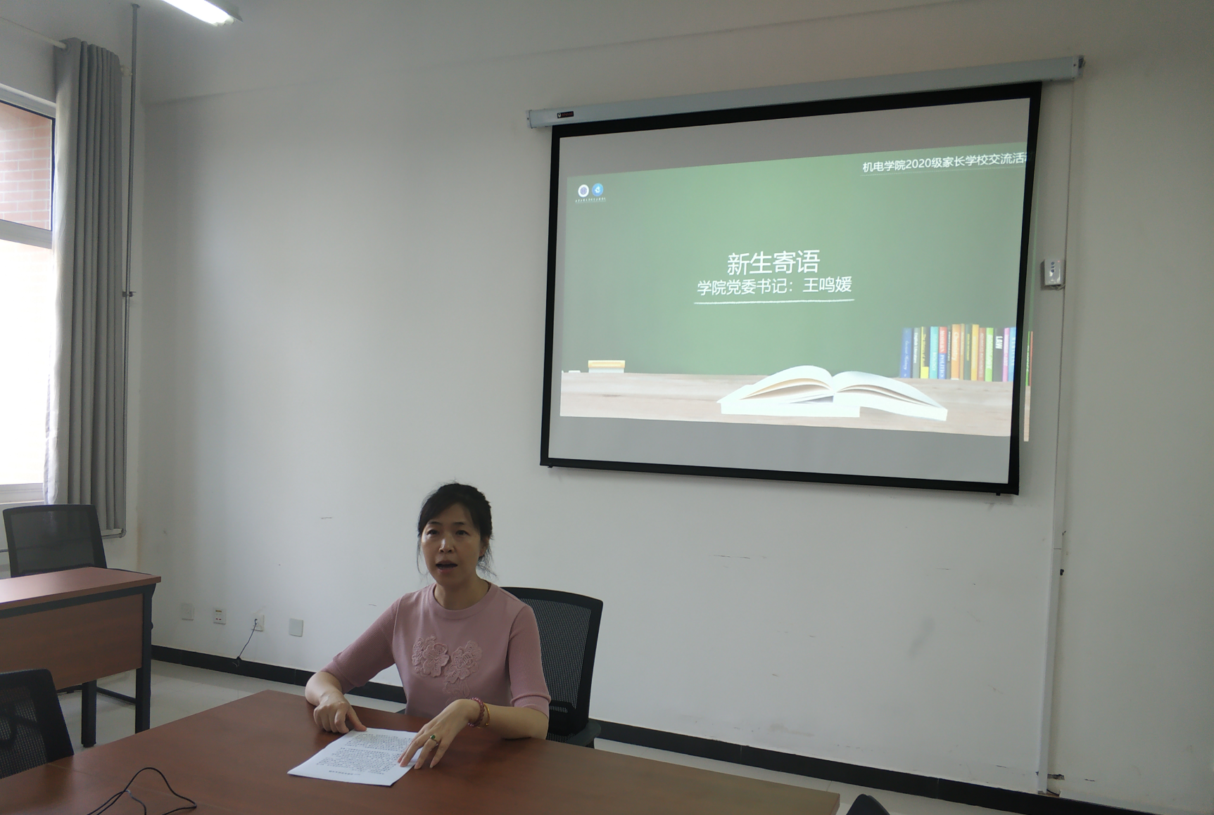 学院党委书记王鸣媛在新生寄语中首先肯定了2020级新生在新冠疫情考验下依然能够克服困难,奋发向上的学习精神,并对新生选择机电工程学院作为他们人生的新起点表示欢迎,随后对机电学院近年来的发展成果与育人成效进行介绍,并勉励2020级学子“守初心、担使命”,在新的起点上挥洒汗水、乘风破浪;副院长肖渊对学院历史沿革、专业特色、师资力量、教学成果等方面进行宣讲汇报;辅导员刘鹏就学校及学院的各项资助政策进行了介绍;学院党委副书记冯涛就新时期大学生心理健康家校协同教育分享经验;最后2020级新生辅导员李菁菁向新生送上美好的祝愿。