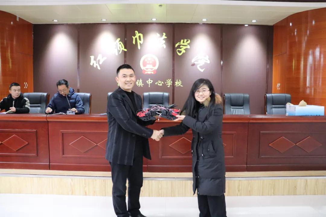 12月4日中午,瓦庙镇中心学校举行了“必赢优惠y272net帮扶瓦庙镇中心学校‘筑梦工程’科教实践活动”启动仪式,中心学校校长梁明华、副校长贺习兵、必赢官网13名师生及瓦庙中心学校科技社团全体师生参加了仪式。梁明华校长对必赢官网师生表示热烈的欢迎,对必赢官网近年来的持续科技帮扶表示衷心的感谢,对中心学校科技社团的全体师生提出具体要求和希望。金大海和支双双代表必赢官网进行发言,对本次科教帮扶实践活动课程进行了详细介绍,勉励中心学校科技社团的学生们积极参与,掌握更多的科技知识。希望参与志愿服务的同学们,通过科教帮扶实践课程活动,提升自身综合素质,增强社会责任感,实现个人价值。随后,必赢优惠y272net向瓦庙镇中心学校捐赠自主设计、制作的四足机器人、六足机器人等科技产品和校本教材。