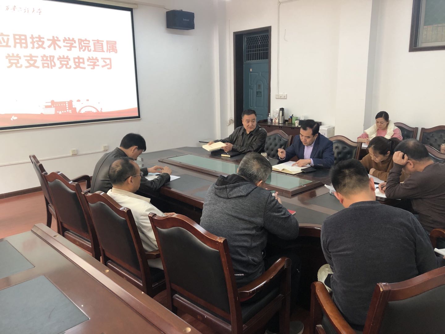 3月29日下午,应用技术学院直属党支部在会议室召开党史学习教育专题会议,学院全体党员参加了此次会议,会议由支部书记王宇主持。