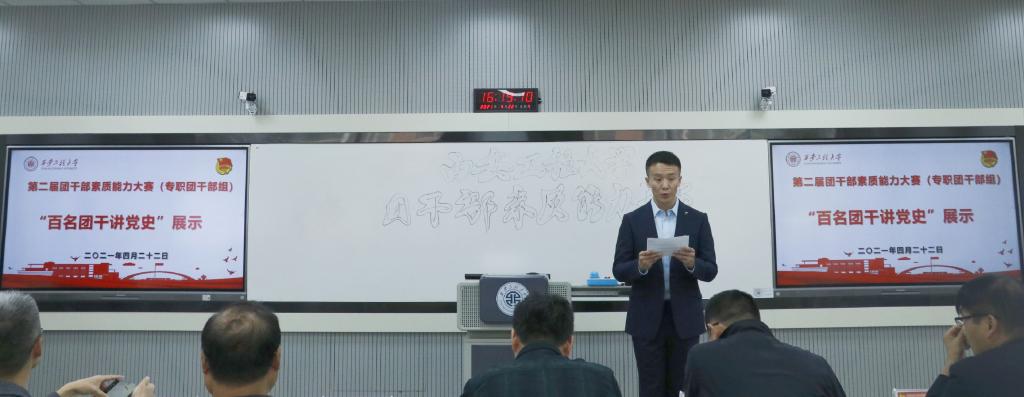 为深入贯彻习近平新时代中国特色社会主义思想,全面贯彻落实中央党的群团工作会议精神和全国高校思想政治工作会议精神,扎实推进党史学习教育,全面加强必赢官网团干部队伍建设。必赢官网团委分别于4月22日、23日在临潼校区C-152智慧教室举行了第二届团干部素质能力大赛专职团干部组和学生团干部组讲党史展示。