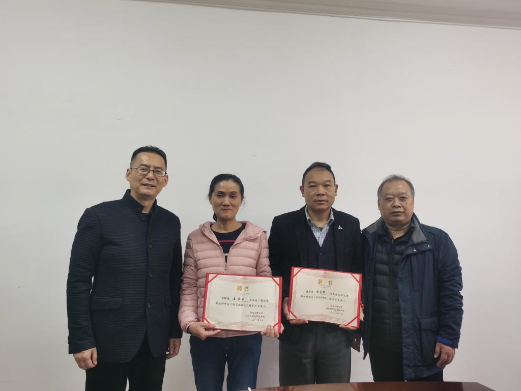 聘任仪式上,李伟和孙润军为纺织工程和轻化工程专业负责人谢光银和王雪燕老师颁发了聘书并合影留念。两位负责人随后作了表态发言,他们表示,专业建设是学院发展的核心要素,聘书意味着责任和奉献,使命光荣、责任重大,今后一定努力做好专业建设的组织者、教学理念的引领者和教学改革的探索者,为学院的专业建设和专业发展贡献出自己最大的力量。