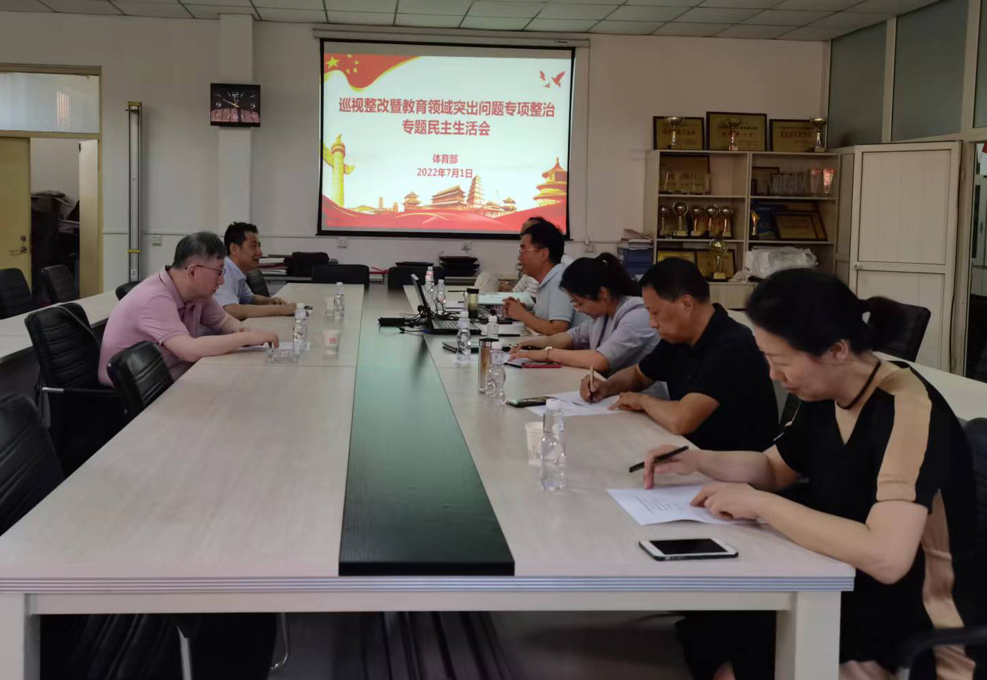 体育部党政高度重视此次专题民主生活会,在认真组织学习、广泛征求意见、深入谈心谈话、深刻检视问题和认真撰写材料的基础上,结合体育部工作实际,精心制定专题民主生活会方案。会议紧扣主题:紧紧围绕省委第十二轮巡视指出的全面整治教育领域党的领导弱化、党建工作虚化、选人用人导向不鲜明、意识形态工作责任缺失、落实立德树人根本任务不到位、全面从严管党治校压力传导不足等突出问题。扎实推进巡视反馈问题整改暨教育领域突出问题专项整治,以整改整治工作良好成效推动学校各项事业高质量发展,理论联系实际,结合思想和工作,坚持问题导向,实事求是进行党性分析,严肃开展批评与自我批评,深刻剖析问题产生原因,认真查摆自身存在不足,明确整改举措和努力方向。