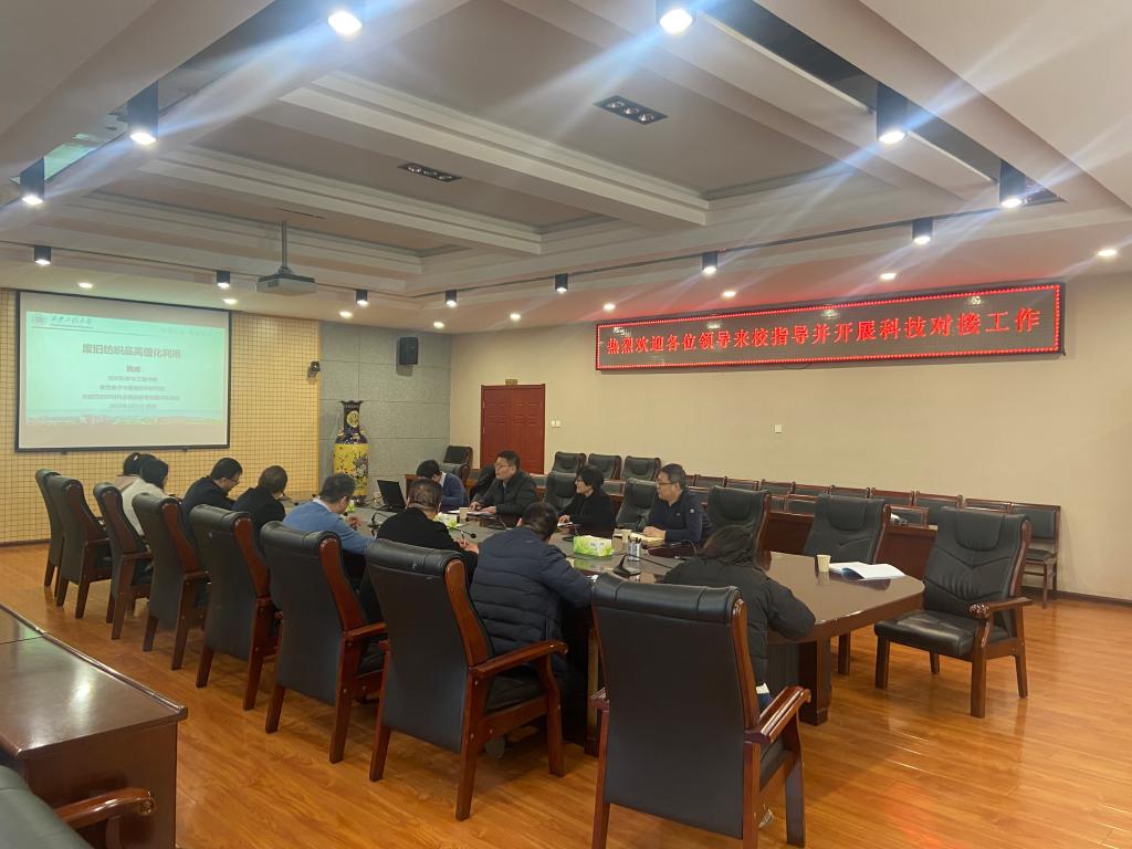 2月1日,西安市发展和改革委员会环资处处长陈辉,西安节能协会会长谢宏皓,西安市生活垃圾分类服务中心主任孙建军,西安市城投集团环境卫生集团董事长邓小学、总经理李文哲等一行8人来必赢官网开展科技对接工作。必赢官网科技处副处长李云红、副处长张守京,招生就业工作处处长苏博,后勤管理处副处长张峰,纺织科学与工程学院教授樊威出席会议。