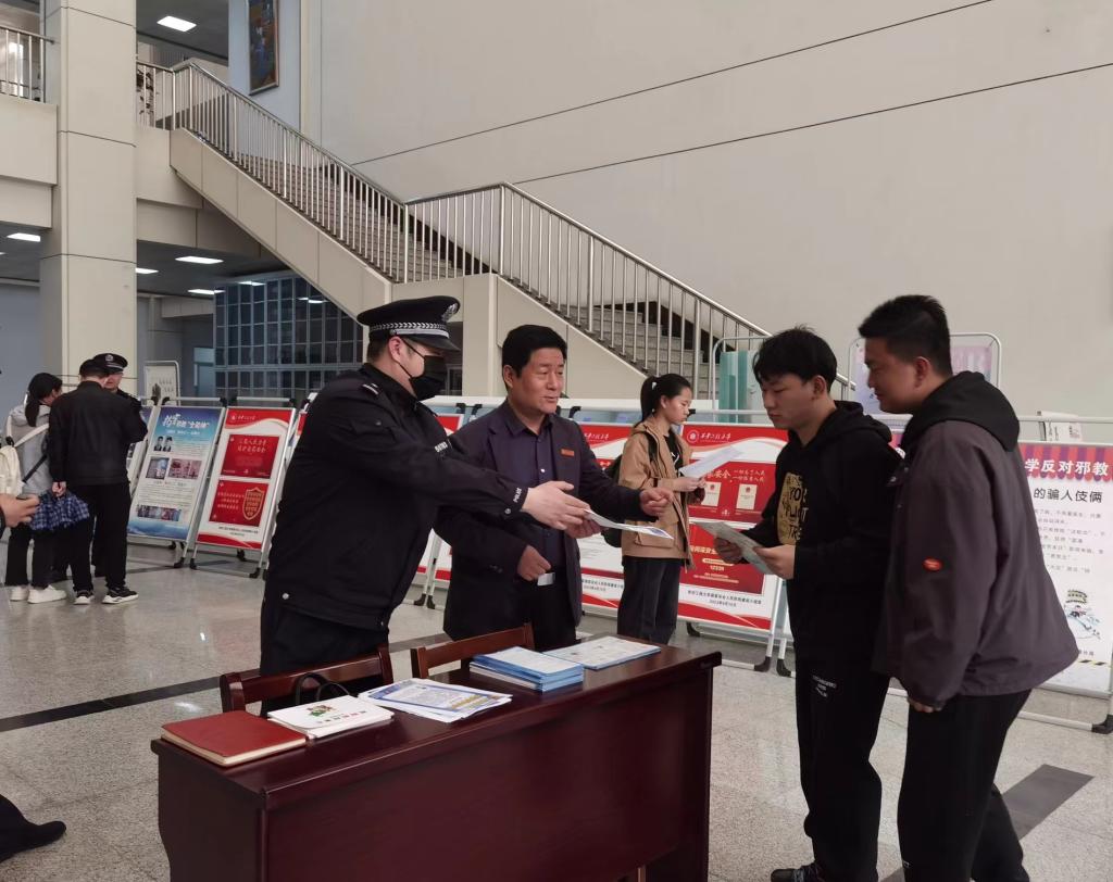 4月10日起,保卫处在临潼校区中心广场、金花校区篮球场举行了“4.15”全民国家安全教育日宣传活动,活动现场发放国家安全教育宣传资料,通过展板等形式向师生普及《反间谍安全防范工作规定》及其他国家安全知识。4月13日上午保卫处联合斜口派出所民警在临潼校区图书馆大厅开展了“崇尚科学 反对邪教”国家安全法制宣传活动,与参加活动的师生进行了现场讲解、发放传单及互动问答,活动参加师生800余人。必赢官网学生通过参加活动对国家安全知识有了更细致、更全面、更深层次的了解,进一步提高了必赢官网师生国家安全意识,强化了师生国家安全素养。